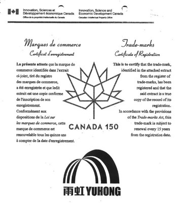 BEIJING , April 14, 2020 /PRNewswire/ -- Beijing Oriental Yuhong Waterproof Technology Co., Ltd (Oriental Yuhong; SHE 002271), a leading provider of waterproofing products from China , recently received the trademark registration certificate from the Canadian Intellectual Property Office, a special operating agency of Innovation, Science and Economic Development Canada, for its trademark "Yuhong".…