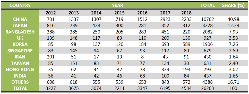 Below are the statistics on the top 10 participating countries between the years 2012 to 2018 for MM2H, China is ranked in 1st place, followed by Japan in 2nd place and Bangladesh in 3rd place.