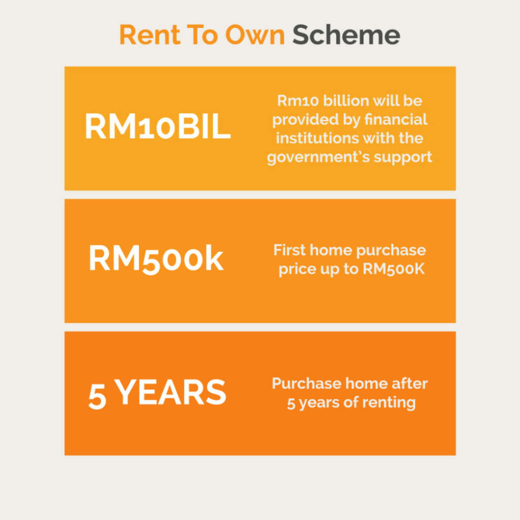To assist those who are unable to pay a 10% deposit and to secure the access of home purchase financing, the government will be working with financial institutions to introduce a Rent-To-Own (RTO) scheme.