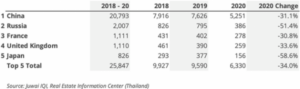 泰国“房地产信息中心”最近发布的数据显示,与2019年相比,2020年泰国的外国人公寓房购买总量下降了34%。跌幅最大的买家来自日本,2020年的交易量减少了58.6%,俄罗斯买家的跌幅为51.4%。中国买家的交易下降了31.1%。