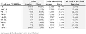 新发布的数据还显示,大多数外国买家的交易价格低于500万泰铢(约合102万人民币元)的房产。其他资料显示,泰国最昂贵的市场–曼谷的公寓价格中位数约为600万泰铢。